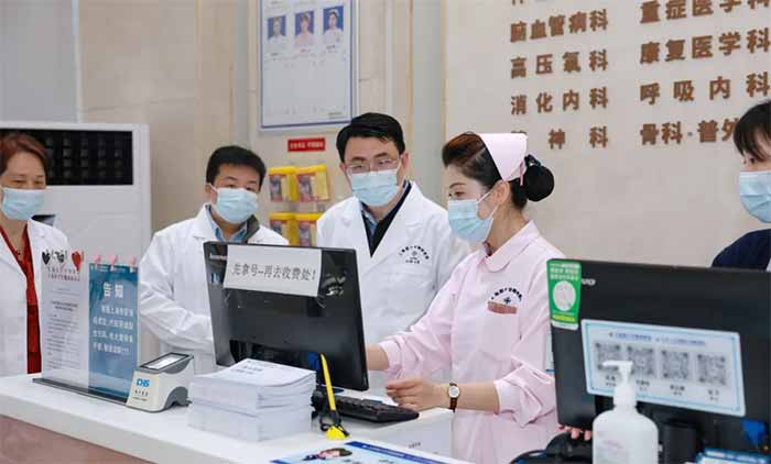 上午9时,调研组一行在院领导的陪同下,深入走访了医院9F重症医学科、8A神经内六科、2F康复医学科和门诊大厅等,重点就超长期住院患者管理、康复记录打卡全流程监管、代配药风险防控等,实地考察医保政策落实与业务运行情况。