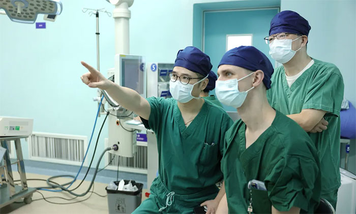 ▲ David Satzer博士现场观摩手术并与李士其教授、卢云鹤博士交流讨论