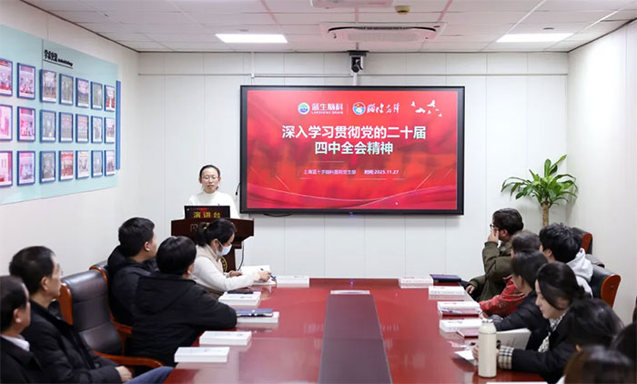 思想是行动的先导,理论是实践的指南。专题党课后,会议旋即进入第二项议程——深入学习贯彻党的二十届四中全会精神。赵宇兰副书记带领与会党员共同研读全会公报及相关权威解读文件,聚焦“人民健康是社会主义现代化的重要标志”战略内涵,深刻领会全会提出的新思想、新战略、新部署。