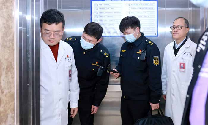 针对医院电梯使用频次高、承载需求特殊的特点,督查组检查了医院在用电梯运行维护情况。工作人员现场测试紧急报警装置通话清晰度、轿厢门防夹保护装置灵敏度,观察运行平稳性与制动性能,逐一核查检验合格证明、日常维保记录及安全标志公示情况。督查组强调,要严格落实电梯“日管控、周排查、月调度”制度,加强维保协同,及时排查运行异常,坚决杜绝“超期未检、带病运行”等隐患,全力保障医患乘梯安全。