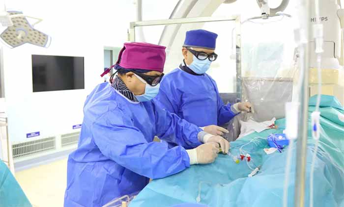 ▲ 席刚明教授、王贵平博士团队进行介入手术