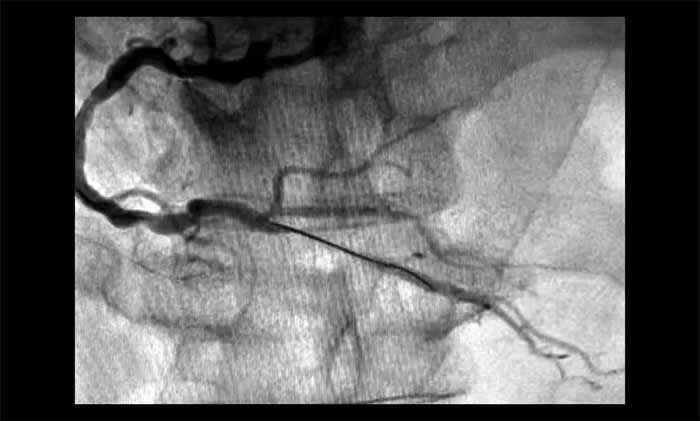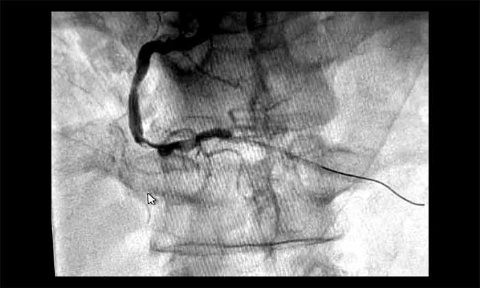 1月28日,姜朝晖博士团队为患者行冠状动脉球囊扩张及支架植入。术中,行多角度造影提示RCA中段严重狭窄近95%,并伴有血栓。通过及时介入,开通闭塞血管,恢复了心肌供血。